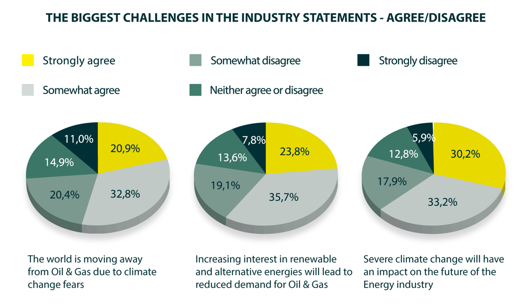 Nearly two-thirds (63%) said that severe climate change will affect the future of the industry, with 60% saying that increasing interest in renewables and alternative Energy sources were behind reduced demand for Oil and Gas.