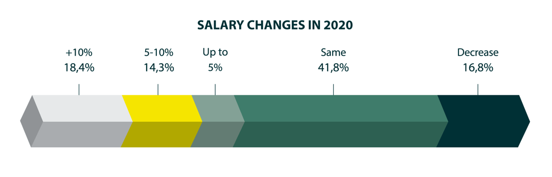 On the other end, 17% of workers have seen their income decrease, up from around 10% in 2019. While the decrease is not surprising given the economic hit of COVID-19, the trend is likely to be short-lived with larger salary rises expected once the impact of the pandemic has subsided. More than half of respondents (52%) said they anticipate salaries will rise again in the next 12 months, highlighting the resiliency of the sector.